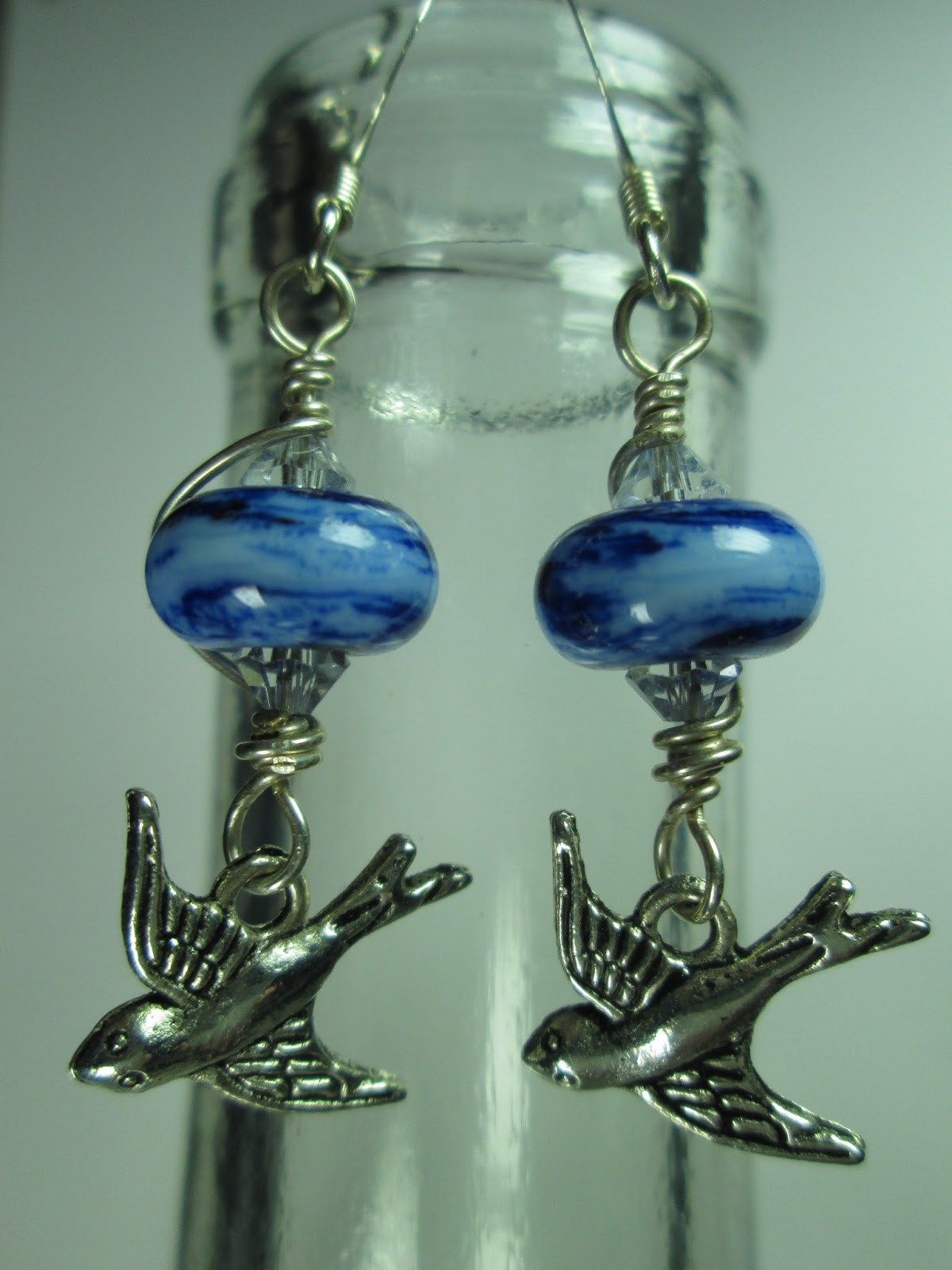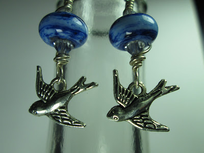 This is a quickie! Back in November, the charming Jennifer of Glass Addictions organized a wonderful charm exchange/auction. I was the fortunate recipient of eight beautiful handmade charms. I naturally wanted more!! I haunted the auction and was able to procure even more than I could have dreamed, including a match to my gifted charm from Shaiha's Ramblings. A little while back I made them into earrings: