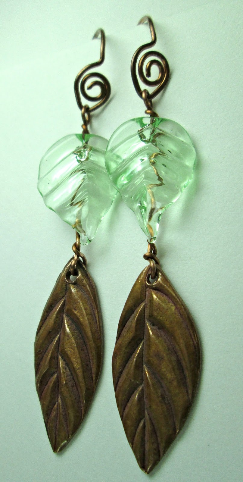 ReplyDeleteBoth pair are beautiful, Monique. I really like the combination of the pale green, glass leaves with the metallic, copper clay leaf charms. The copper earring hooks bring everything together beautifully.