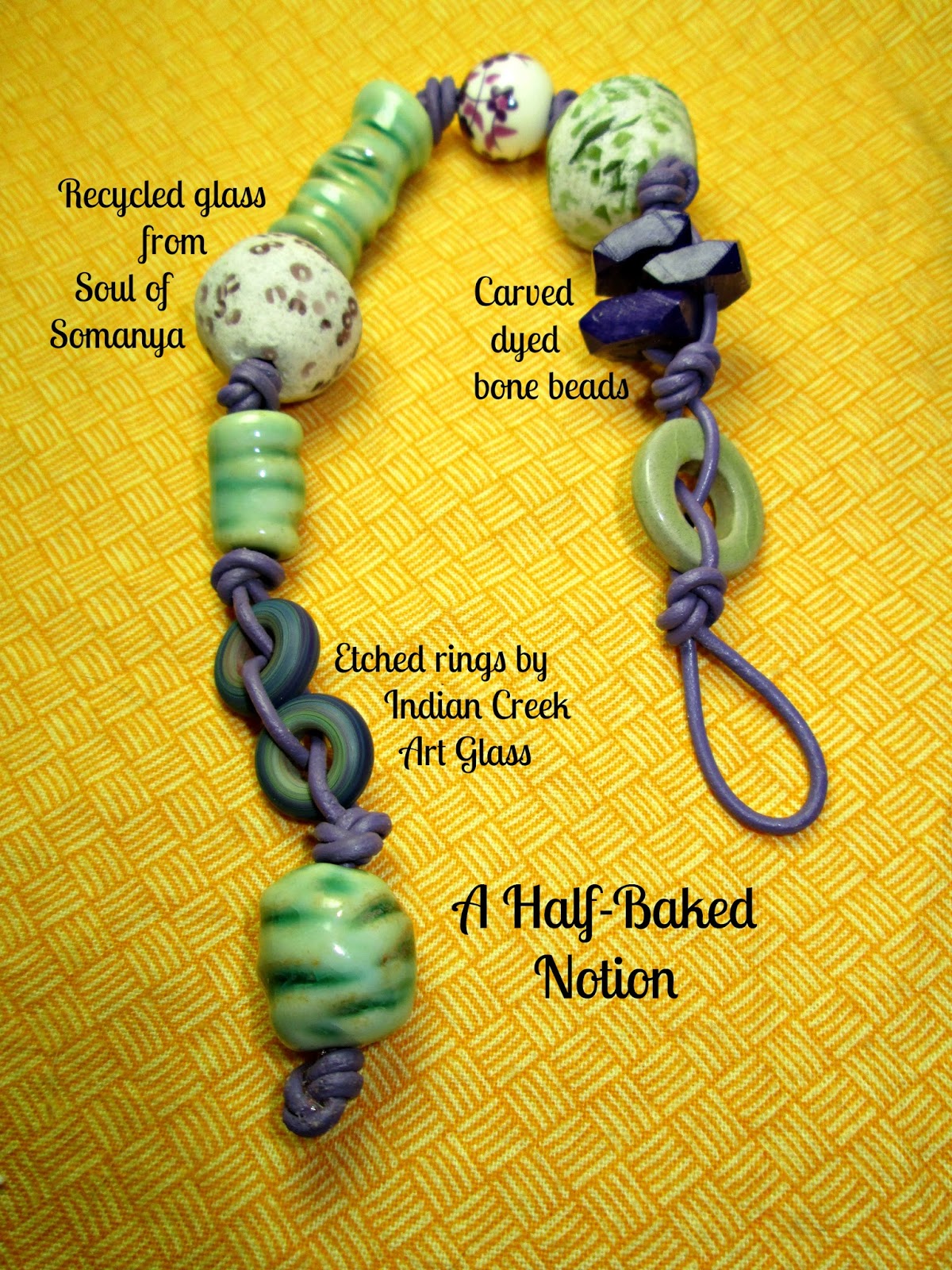 ReplyDeleteMonique, this is absolutely gorgeous! I love the green-purple combination, it screams 'summer! summer!' - beautiful. You should have left a pair of the ceramic 'washers' for a matching pair of earrings, I hope you make a set :)