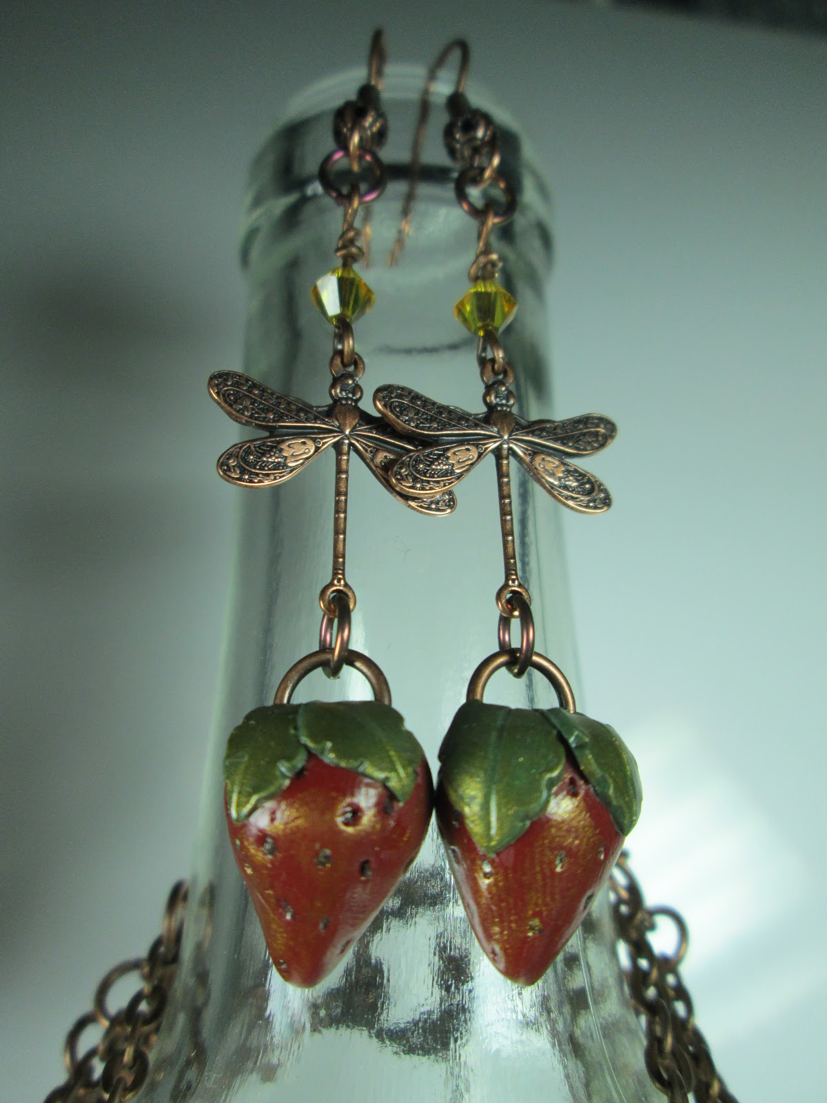 If anyone is experiencing a sudden craving, strawberries are  available in two sizes and as either charms (like mine), or as beads with a hole from top to bottom. Check Hazel's Etsy shop for other unique styles, too.